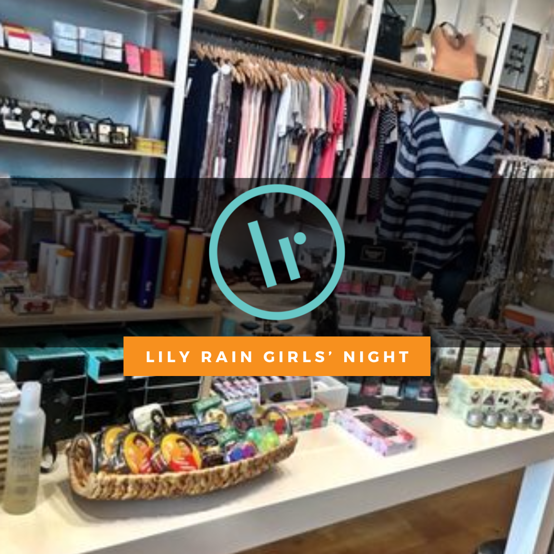 This is a private, after-hours event from 6:00 PM to 8:00 PM for you and your girls at the Lily Rain boutique at Preston and Royal. All attendees will receive 20% off their purchases (some exclusions apply), and they will provide wine and a cheese tray.